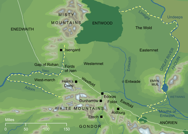 Rohan, or the riddermark (rohirric), was a great kingdom of men, located in the land once known as calenardhon, situated in the great vale between the misty mountains to the north and the white mountains to the south.